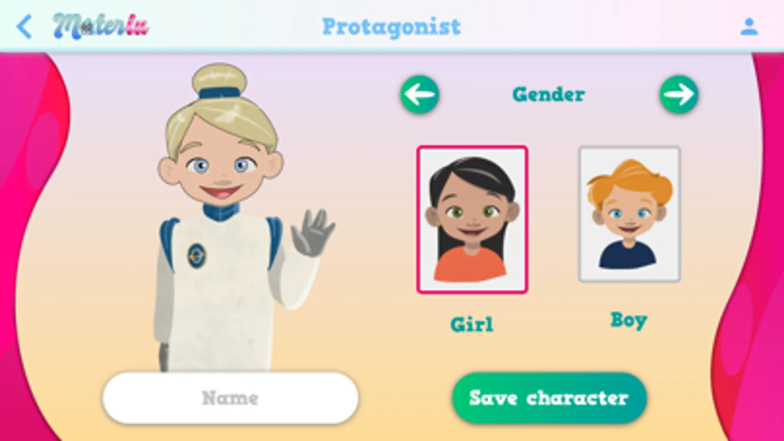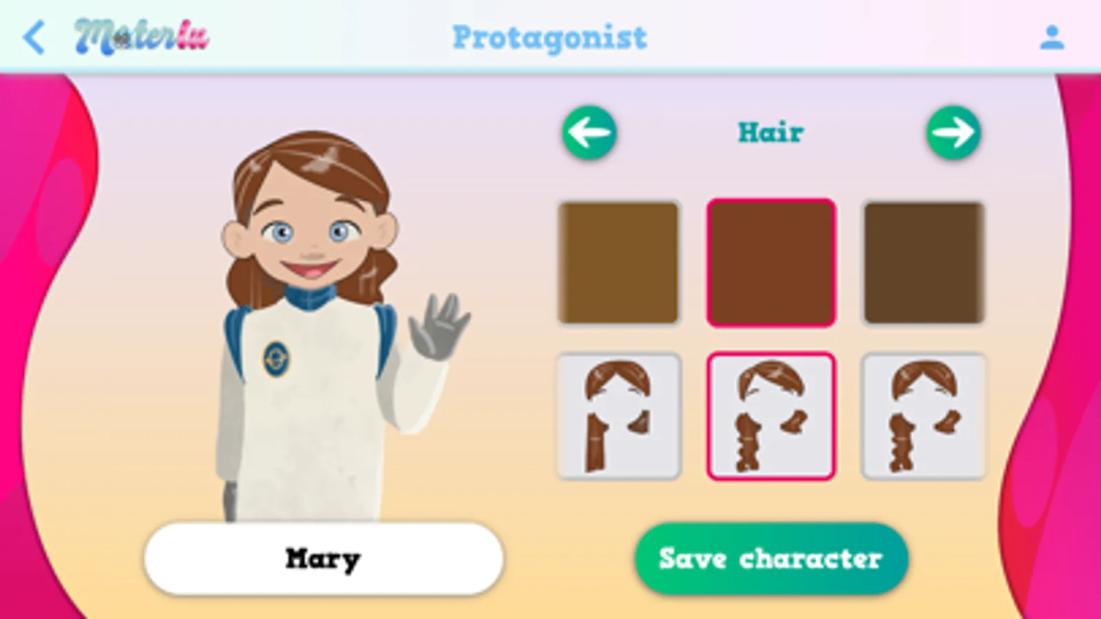 Choose the eye color and shape, the skin color, the hair color, the hairstyle, and more. It only takes seconds to configure the character to the kid’s image and likeness!