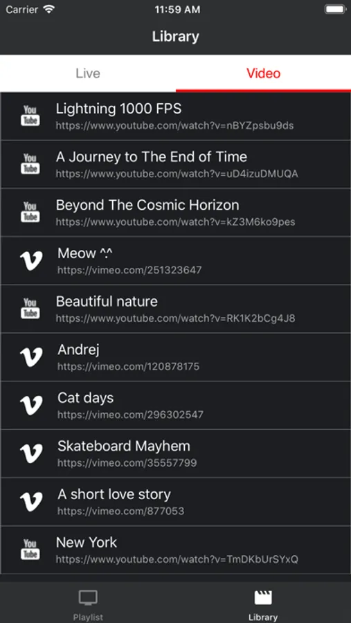 Instant online media player. Have a stream URL you wan't to save? Just add it to the IOMP app, to save it in a playlist so you can watch it anytime. You can also save YouTube or Vimeo videos.