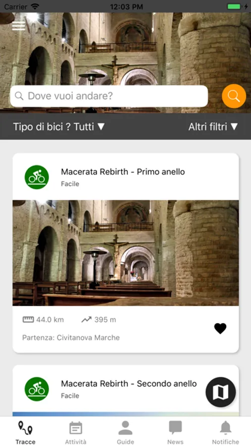 Avrai le informazioni che servono per fare cicloturismo nelle Marche: le descrizioni dettagliate delle tracce, dati tecnici, mappe dei percorsi su strada, gravel e MTB. Tramite lo smartphone potrai seguire l’intera traccia senza perderti mai.