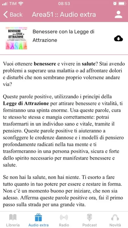 Se sei già cliente di Area51 Publishing e hai un account, puoi connetterti quando e dove vuoi alla tua libreria, scaricare e ascoltare i tuoi audio preferiti. I tuoi contenuti preferiti sono finalmente sempre a tua disposizione, in un’unica app e a portata di click.
