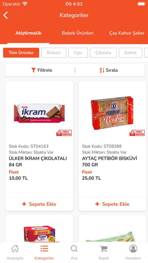 * Ürün kategorilerinde filtreleme yapabilirsiniz.