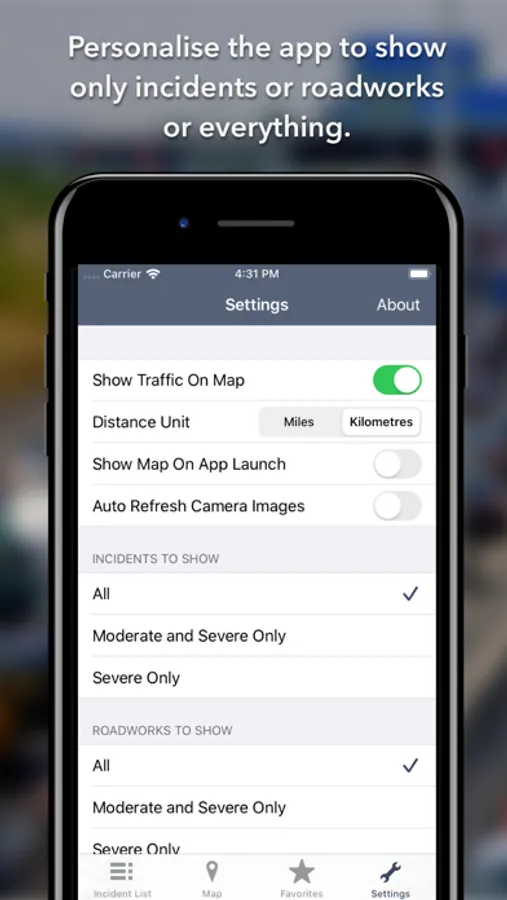 - Save your favorite cameras for quick access to see how clear/congested your usual routes are.