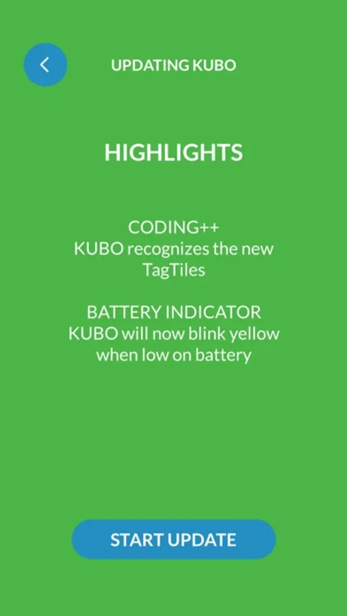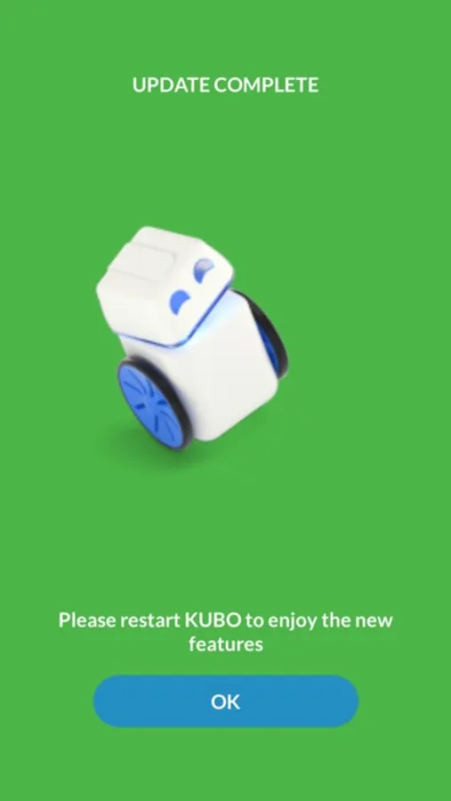 It takes just minutes to connect your robot or robots. Once connected you will see which updates are available for you. Updates include things like improving KUBO’s movement accuracy when KUBO turns and moves forward and providing light feedback for battery level indicators.