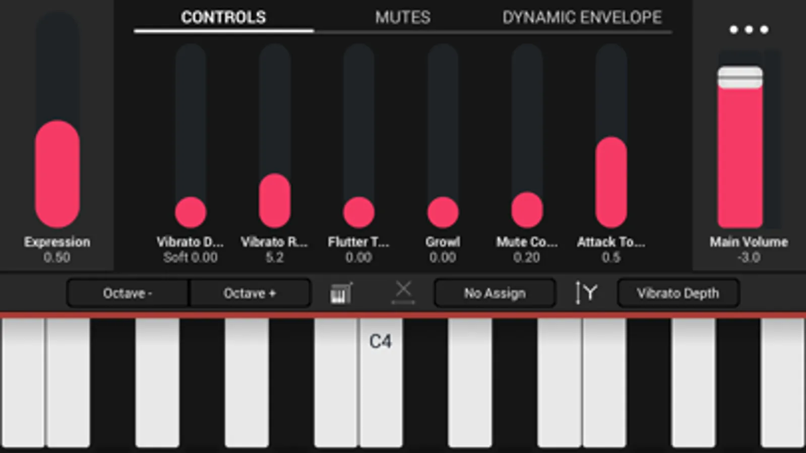 - Adjust every aspect of the instrument’s sound (timbre, vibrato, amount of air, etc.) through an easy-to-use control panel