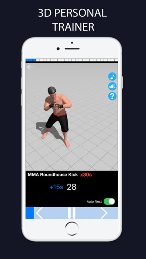Includes exercises: Jab, Boxing cross, Boxing hook, MMA high kick, MMA roundhouse kick…. All exercises are detailed by video and animation 3D models