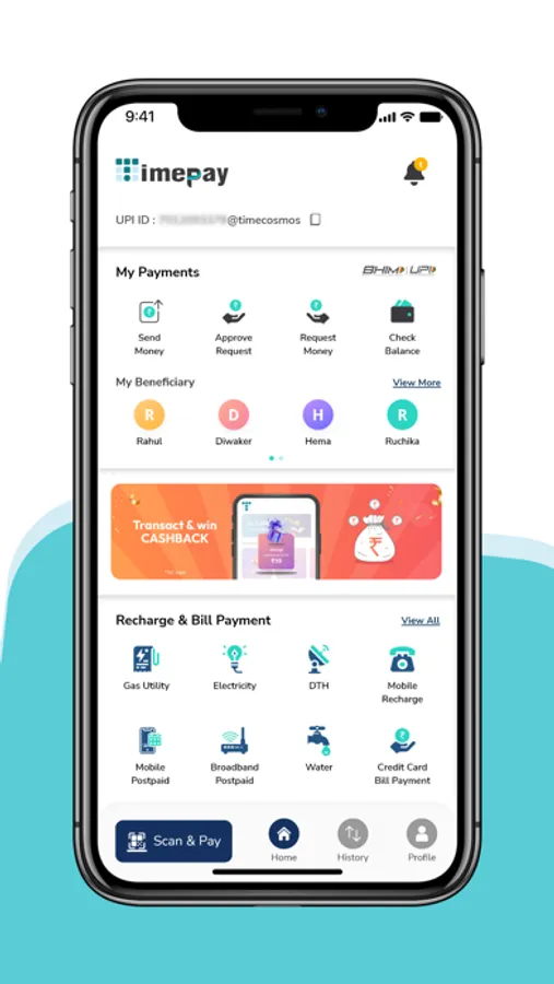 Introducing TimePay - your all-in-one payment app! Seamlessly manage payments with BHIM UPI, credit/debit cards, and wallets. Top up your mobile, settle utility bills, and shop at your favorite stores, both offline and online. Experience hassle-free investments in mutual funds and insurance plans. With TimePay, link your bank account for instant money transfers via BHIM UPI, ensuring a safe and secure platform. Say goodbye to internet banking - TimePay has got you covered for all your financial needs!