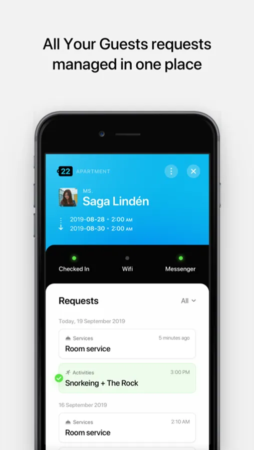 Smart TV, Wi-Fi, and messenger Chatbot integrated as a one-product, connected to Hotel's PMS, customized and ready to use the same day.