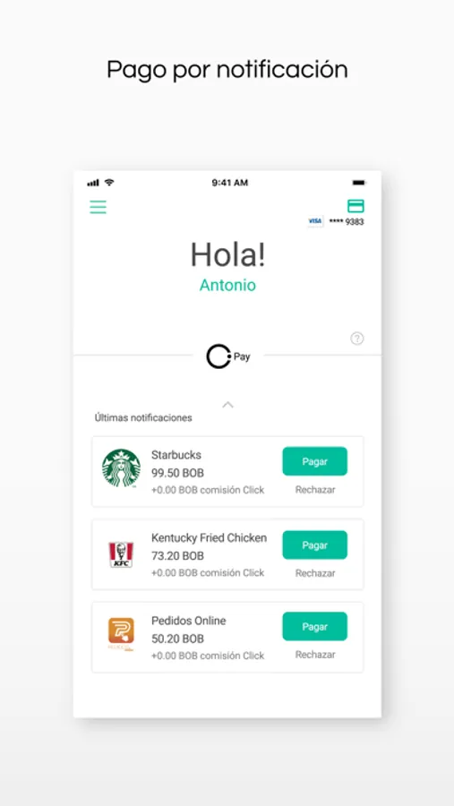 Estés donde estés, recibe notificaciones de pago a través de tu aplicación. Ahorra tiempo, paga con Click.
