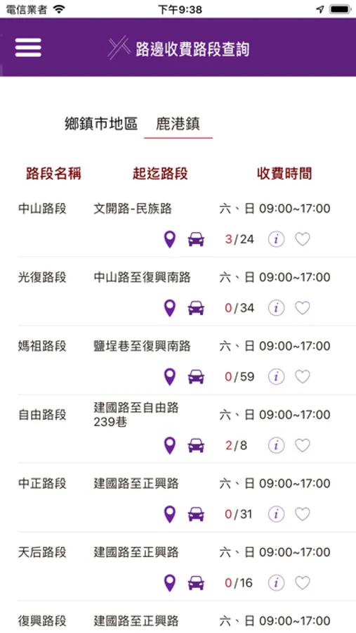結合彰化線路邊停車資訊網,提供路邊收費路段資訊。