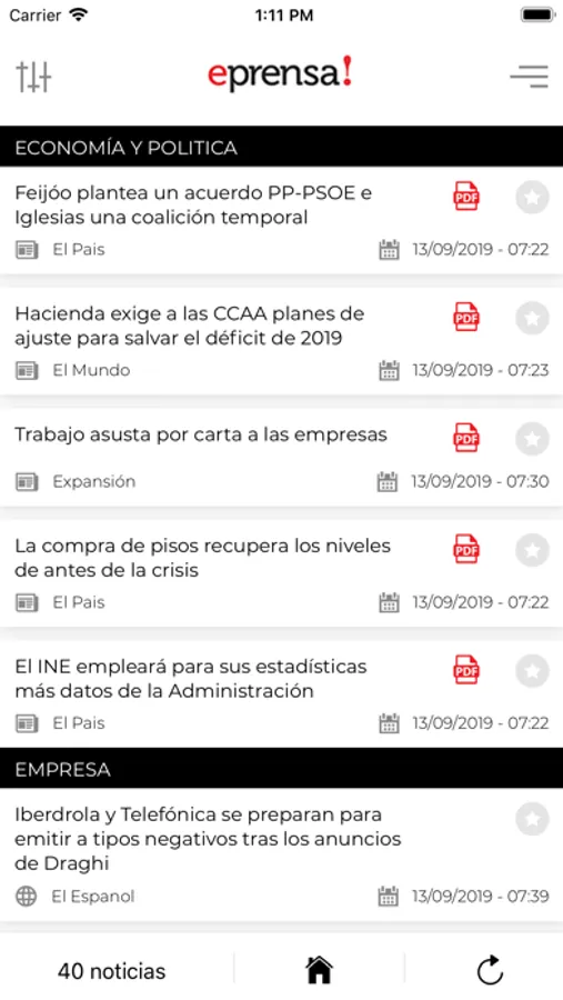 Con esta aplicación podrás consultar las noticias que Eprensa haya seleccionado para ti en función de tus criterios específicos de búsqueda, pudiéndose utilizar para una o varias cuentas a la vez.
