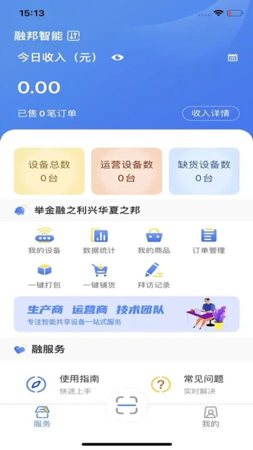 用户可实时查看设备数据、管理数据,能够精准分析运营数据。同时,融邦智能APP还可以对收入、库存进行管理,让用户能够更快更便捷管理后台。