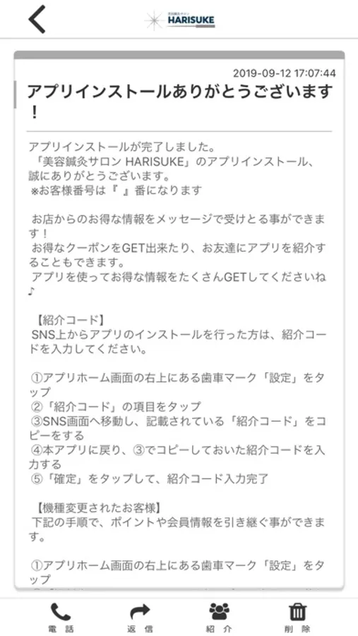 HARISUKEのアプリをSNSを通じてお友達に紹介する事ができます。