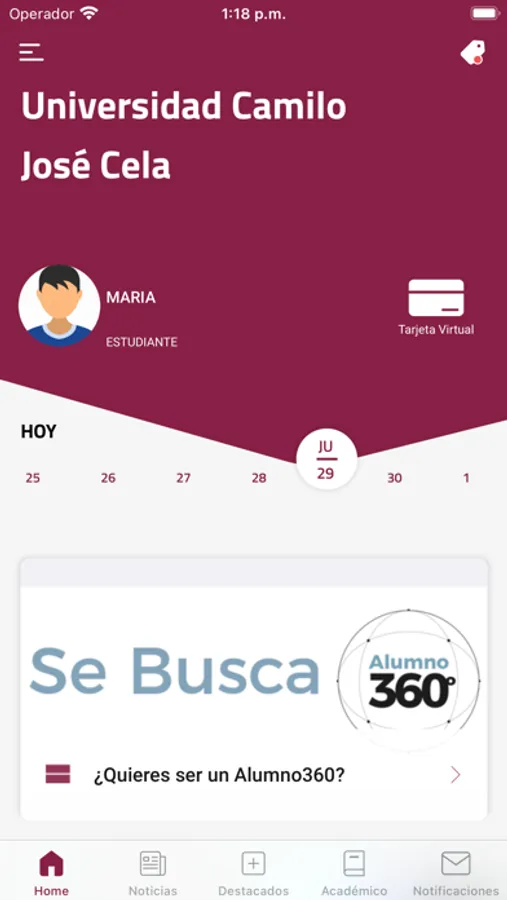• Calendario universitario: Desde la app podrás acceder a tu calendario académico y conocer todos los eventos de la universidad.