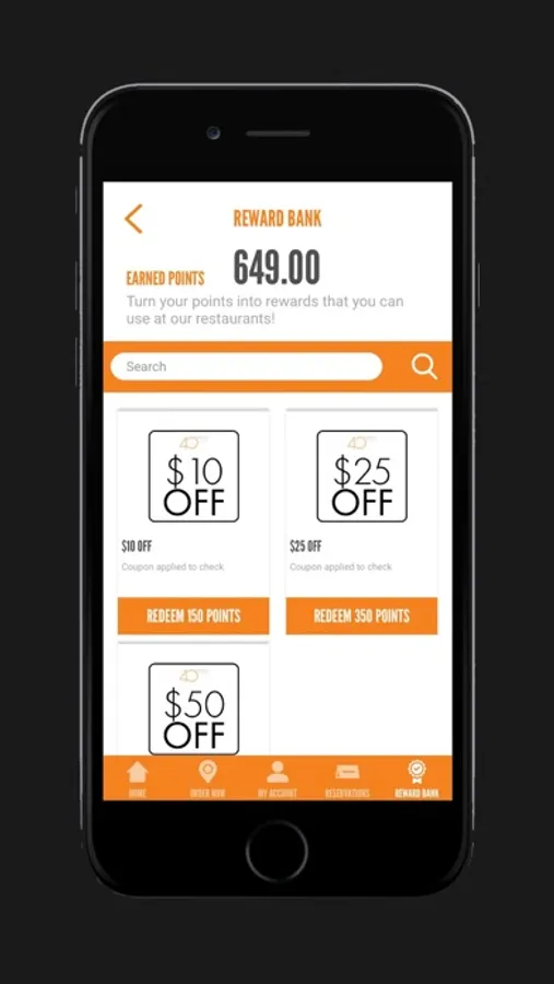 - Redeemable coupons: 150 Points: $10 off | 350 Points: $25 off | 650 Points: $50 off**