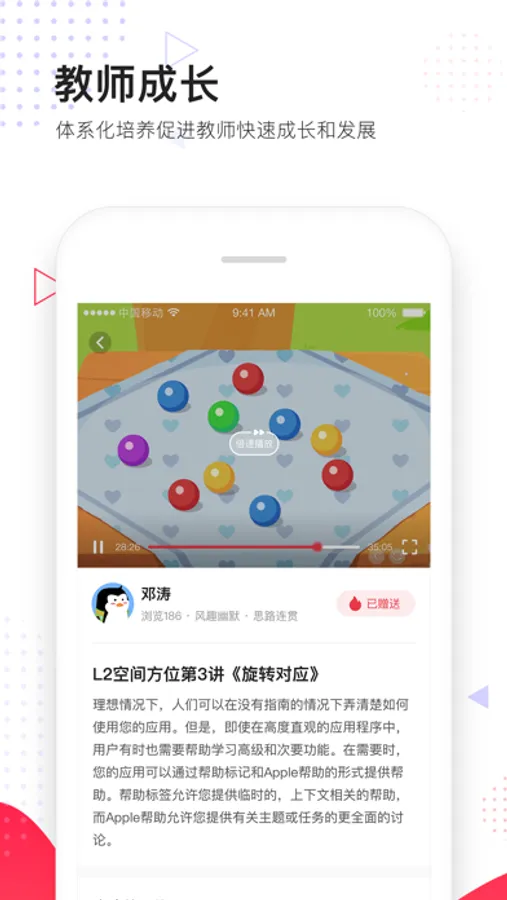Sparkle Me 是火花思维教师日常工作使用的应用,提供课表查询、作业批改、自我能力提升等服务。达到帮助教师提高教学技能的目的,从而促进学生学习效果的优化。