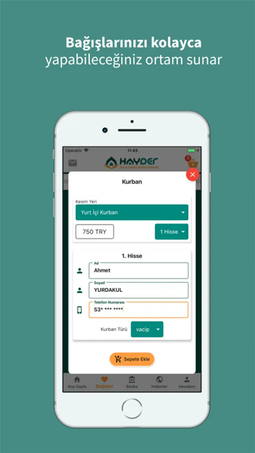 Bu uygulamayı kullanarak çok kolay bir şekilde bağış yapabilir, yaptığınız bağışları takip edebilirsiniz. Gelişmiş arayüzü sayesinde hisseli kurban bağışını hızlı ve kolay bir şekilde yapmanıza olanak sağlar.