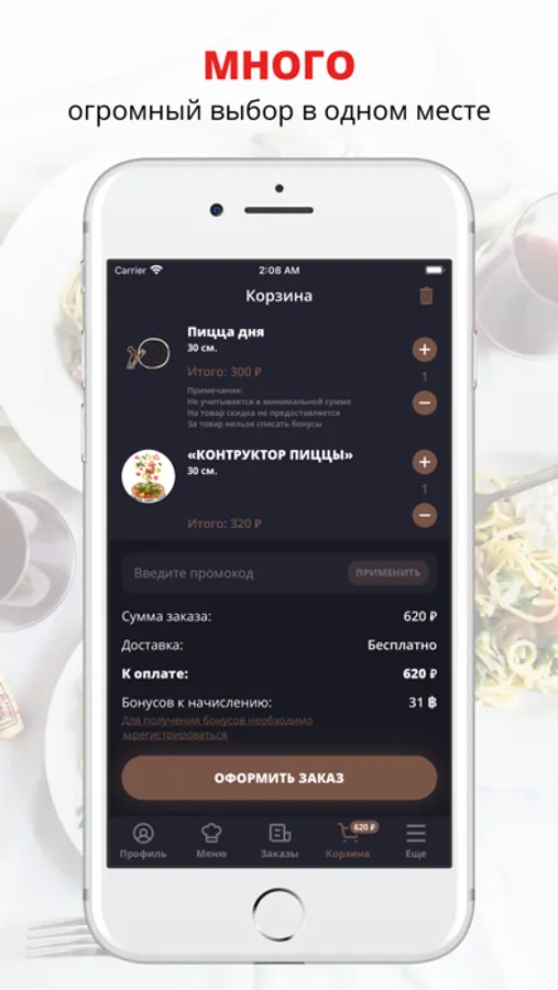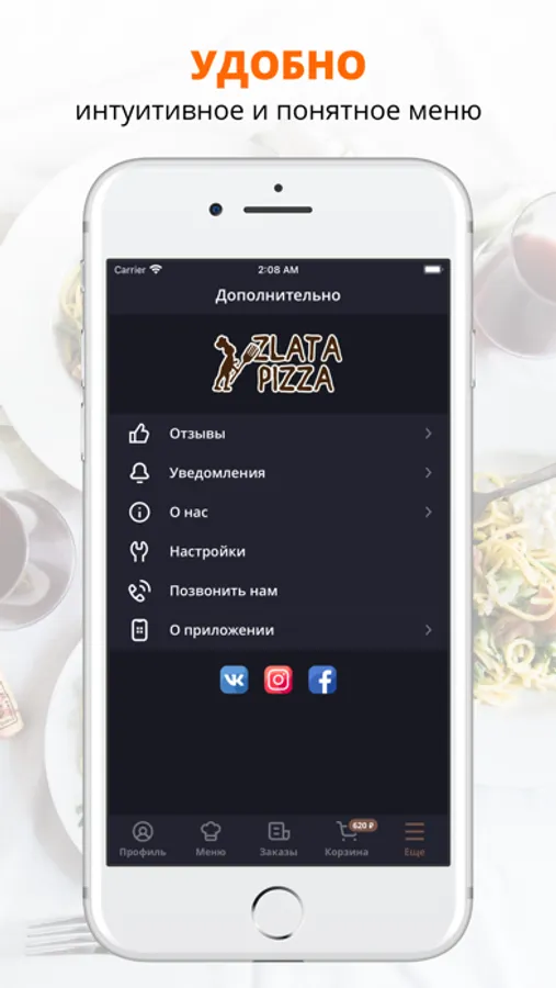 В приложении вы можете ознакомиться с широким ассортиментом пиццы, роллов, суши и оформить заказ на доставку или самовывоз!