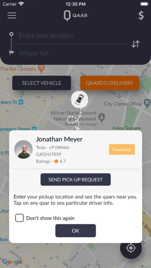 - Open the Qaar app and fill in where to go.