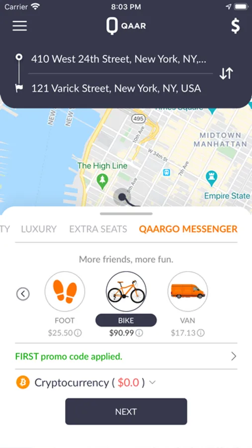 Have a letter? Package? Or furniture to send? With the QaarGo feature, messenger services are as easy as ordering a car. By foot, by bike, by van–all at a great value.