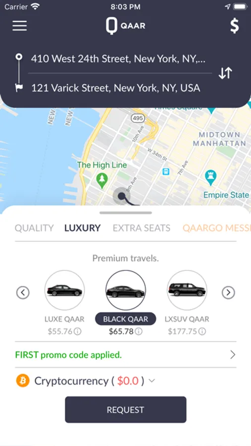 Qaar drivers collect 100% of their fare without paying outrageous commission fees. There are also extra benefits for patrons—like paying with cryptocurrency, choosing your driver, and a smart, intuitive design.
