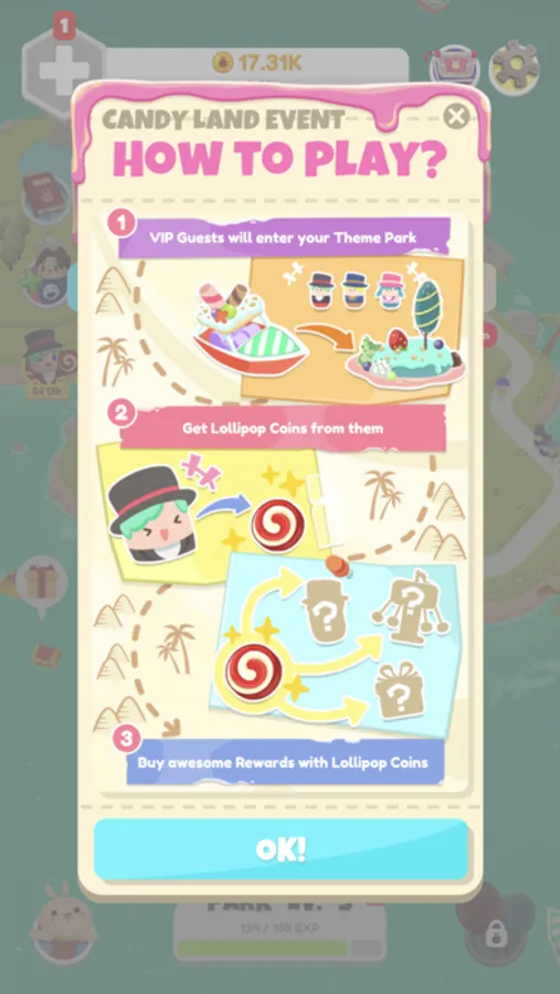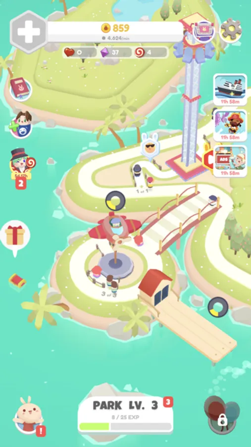 ◯ Climb the charts by using prestige and travel through colorful levels: Build up your adventure park simulator and become a millionaire tycoon!