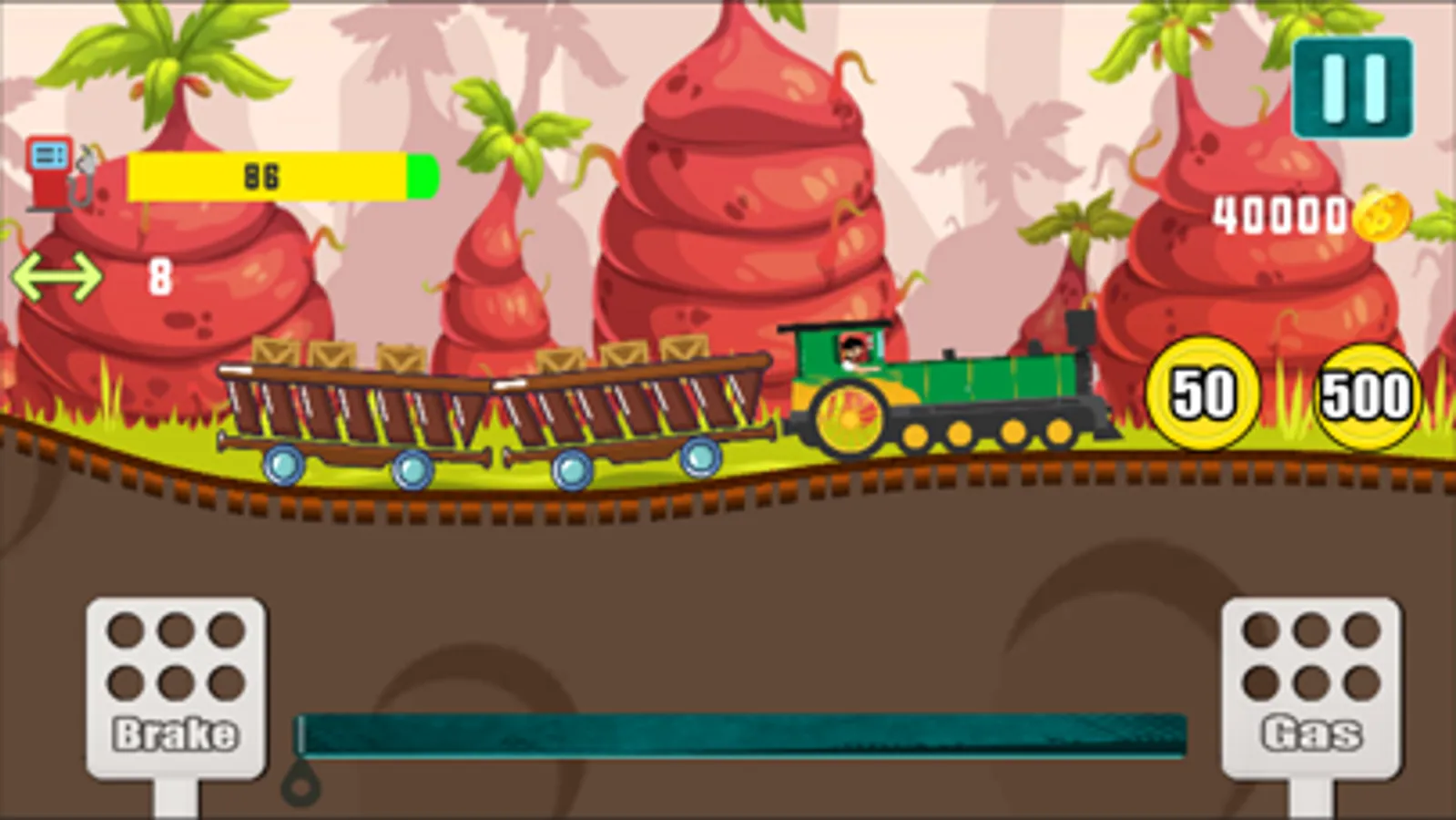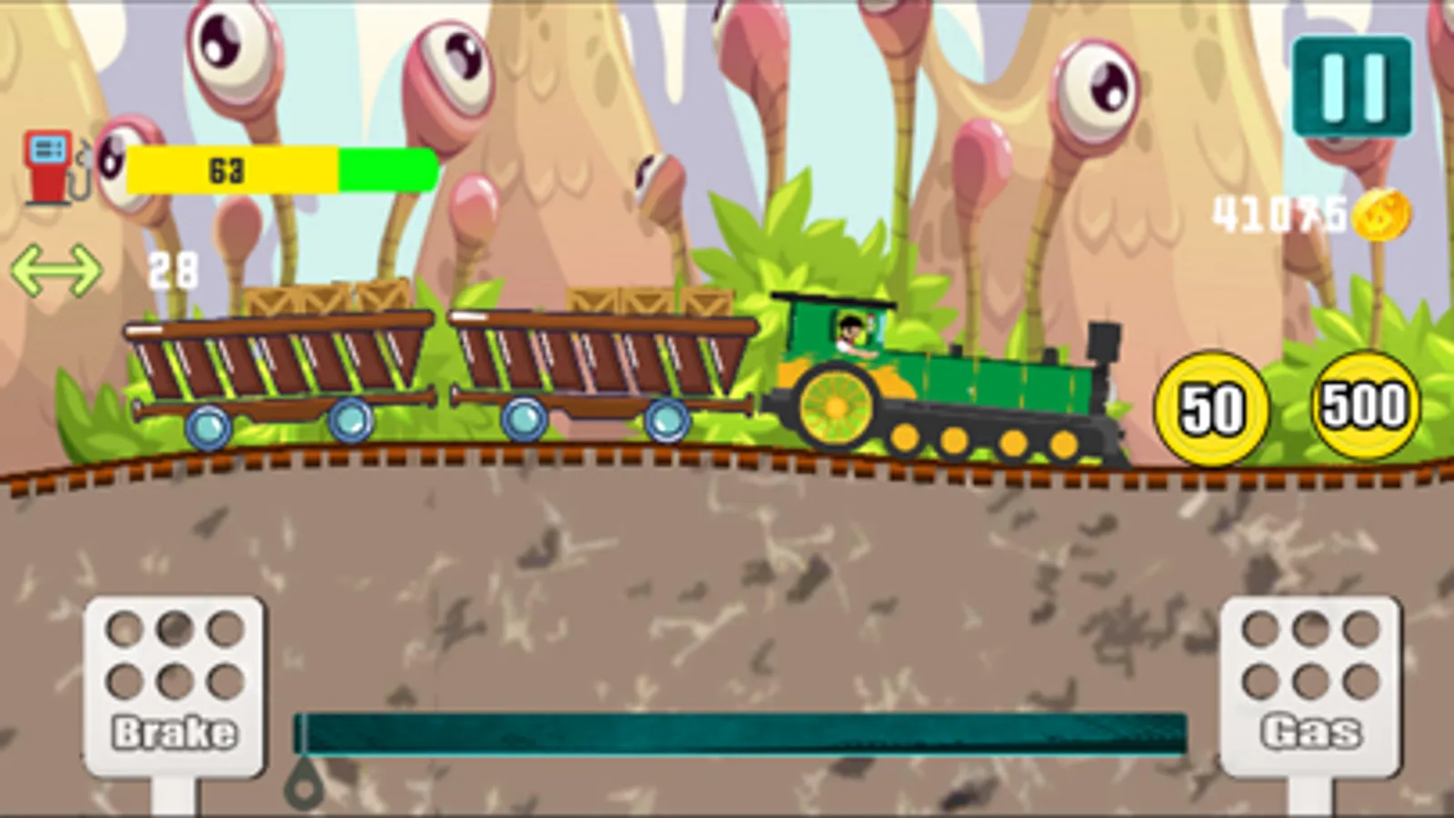 The farther you have carried the train while saving the boxes, the higher score you will achieve. There will be coins on your way that you can collect and add to your score. Not only that but you will get fuel on the way as well that will help you to finish the level without running out of fuel.