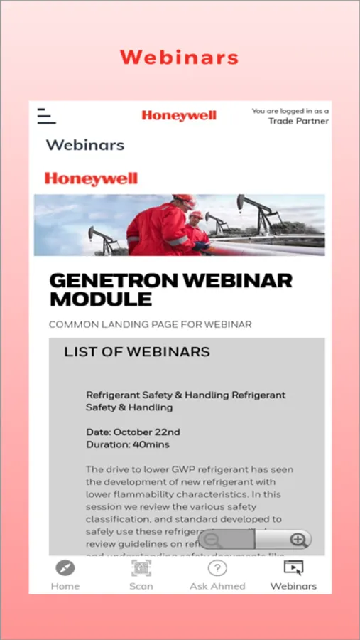 They can also be part of Honeywell e-learning sessions on refrigerant technology and solutions via the webinar module embedded in the App. Customers can see and download product datasheets, MSDS and other technical information.