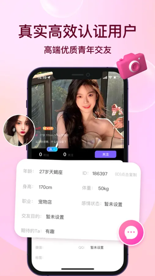 撩爱采用全新认证机制,真实的“本人认证”、“视频认证”,竭尽全力为您提供高端优质的社交体验。在撩爱,您可以轻松实现高质量同城约见、伴游出行、长期伴侣、恋爱奔现、找人陪伴、商务出行等等。在这里结识更多有趣的Ta,和Ta一起分享你的美好瞬间和重要时刻。