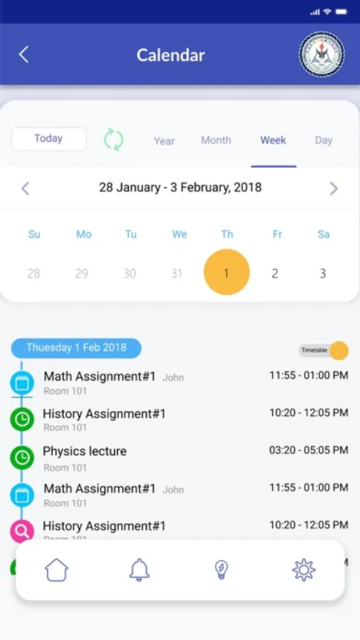 • Calendar: view your daily schedule of classes, extra-curricular activities, and other institution events and