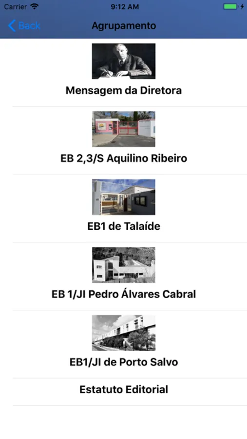 Espaço que permite a divulgação da mensagem da Diretora e que faz uma breve caracterização de cada uma das Escolas que compõem o Agrupamento Escolar.