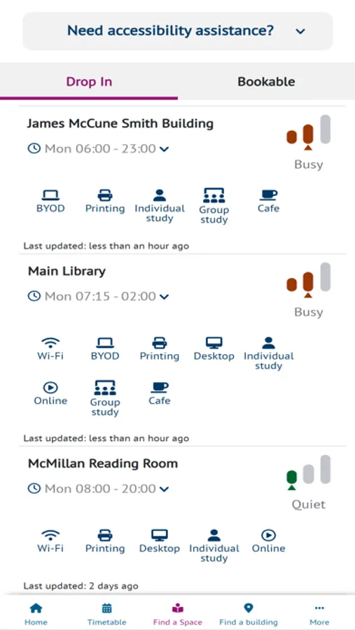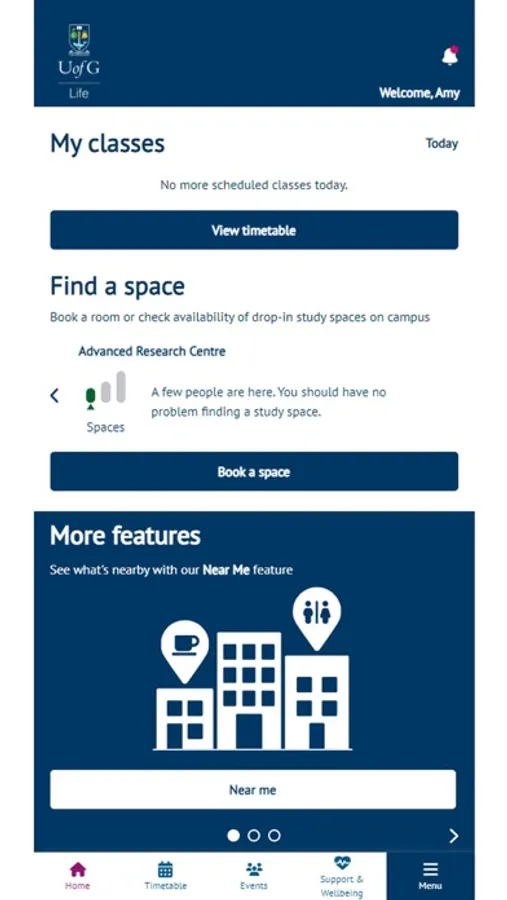 Calling all students- love your UofG life! Our app is the simplest way to view your class timetable, find your way around campus, locate facilities nearby and book study space for you and your friends!