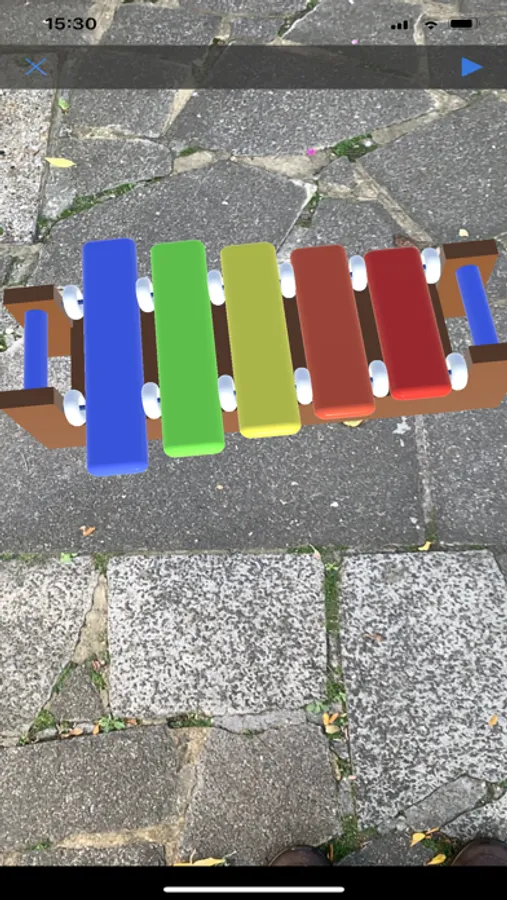 A simple toy augmented reality xylophone with five notes and a button in the top right hand corner for an up and down glissando.