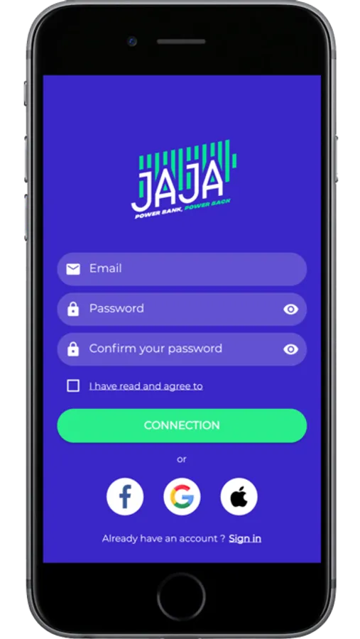 Le velib’® de la batterie pour smartphone… JAJA POWERBANK® ce sont des bornes de batteries en libre-service disponibles après téléchargement de l’application :