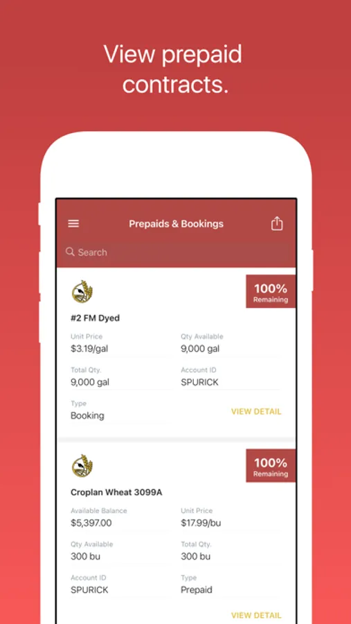 Prepaids & Bookings: See up-to-date info on prepaid or booked inputs