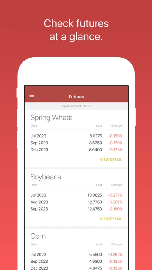 Futures: See Grains, Feed, Livestock, and Ethanol futures listed in order of your preference