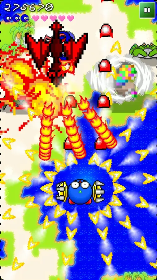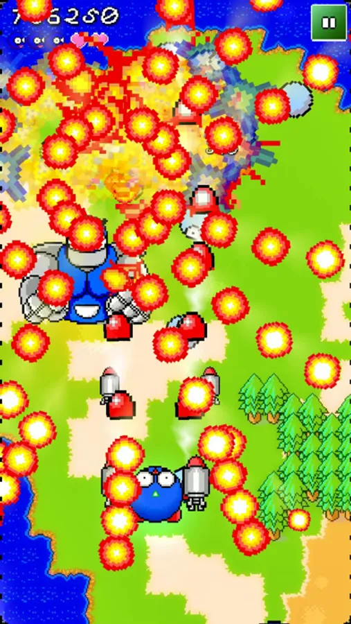 Collect the weapons that appear when you destroy present boxes! They change the bullets shot from your character. Choose from various weapons to suit the situation. Some strong enemies can be easily defeated by switching weapons. Just a quick heads up - all weapons are disposable.