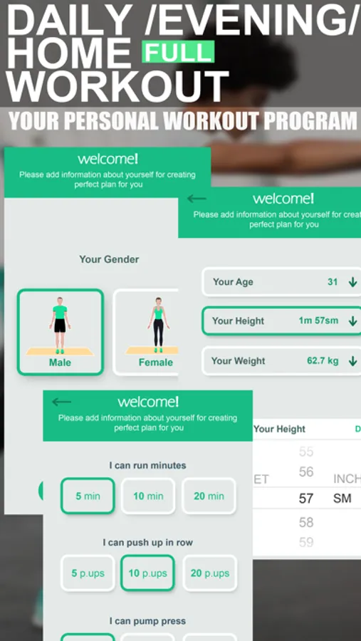 Experts have developed a program so that you get your individual training plan, taking into account your physical characteristics.