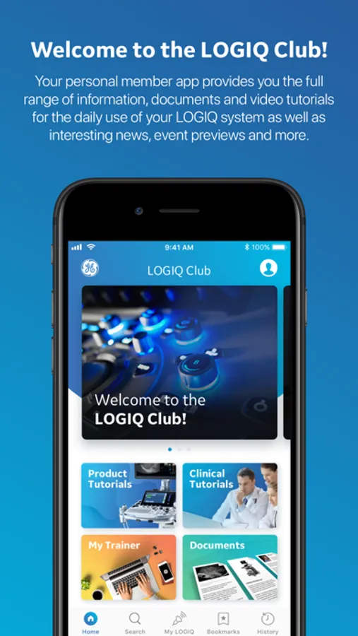 The GE LOGIQ Club App provides easy access to education content of the GE LOGIQ Club.