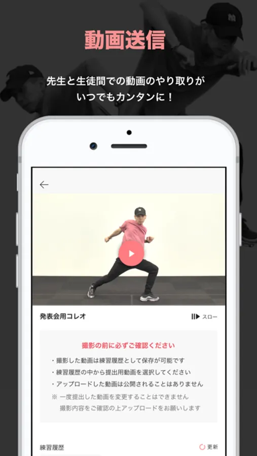 先生と生徒間での動画のやり取りが簡単に!レッスン後に先生から課題動画が送られてくるので、生徒は動画を見ながら自主練し、練習動画を先生に送りましょう。
