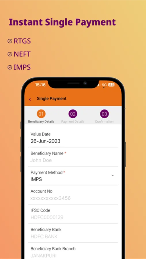 • Transfer money using various payment modes such as Internal Fund Transfer for transfers with AU Small Finance Bank & to other Bank’s via NEFT, RTGS and IMPS
