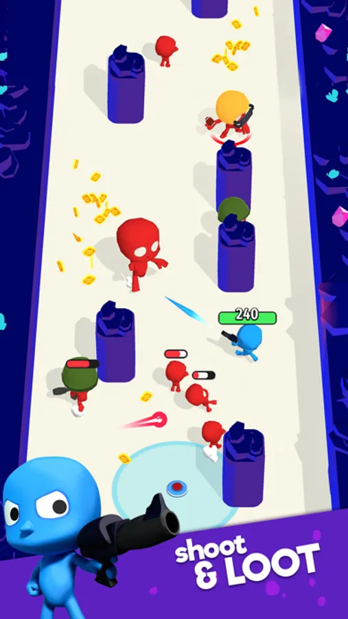 Playable with one thumb and designed to be instantly picked up and enjoyed - the nonstop roguelike action of Shoot n Loot awaits!