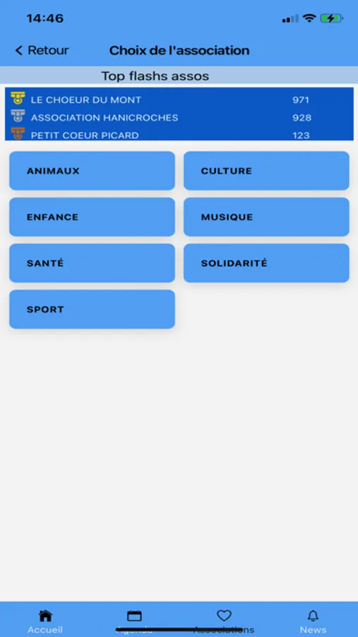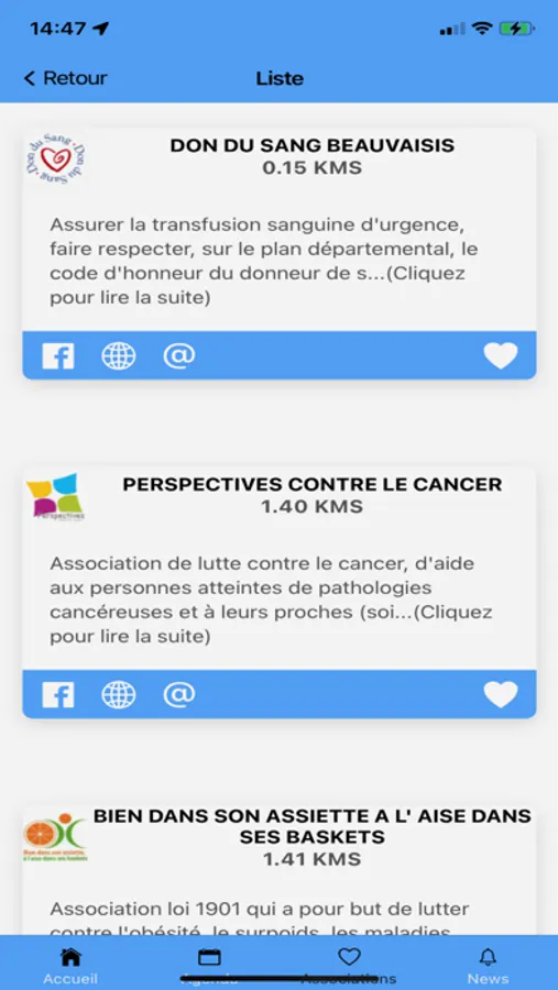 1 - Lors de la première connexion, choisis une association locale partenaire sur l’application (il est toujours possible d’en changer par la suite en modifiant les paramètres).
