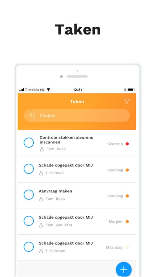 In dit scherm heeft u een overzicht van al uw taken.