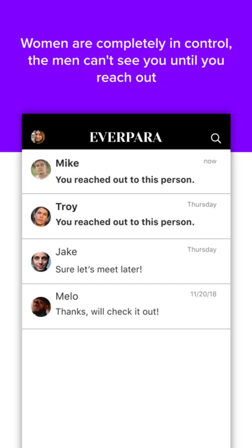 Everpara puts women in control of the people they're talking to, and places the ball totally in their court.