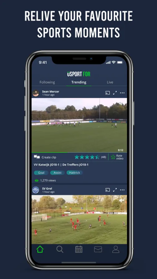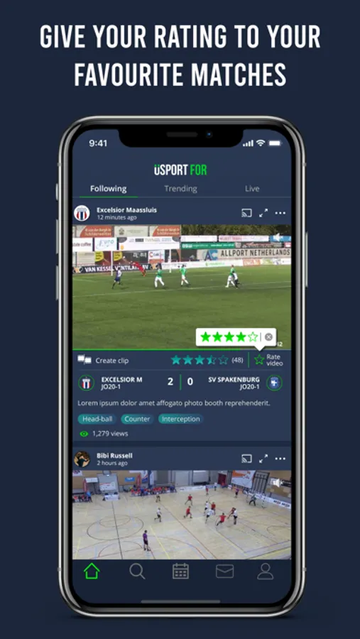 Watch your own match or games of your favourite sports clubs on the Usportfor App. Find and watch your favourite sports moment of the game. Rate your favourite match.