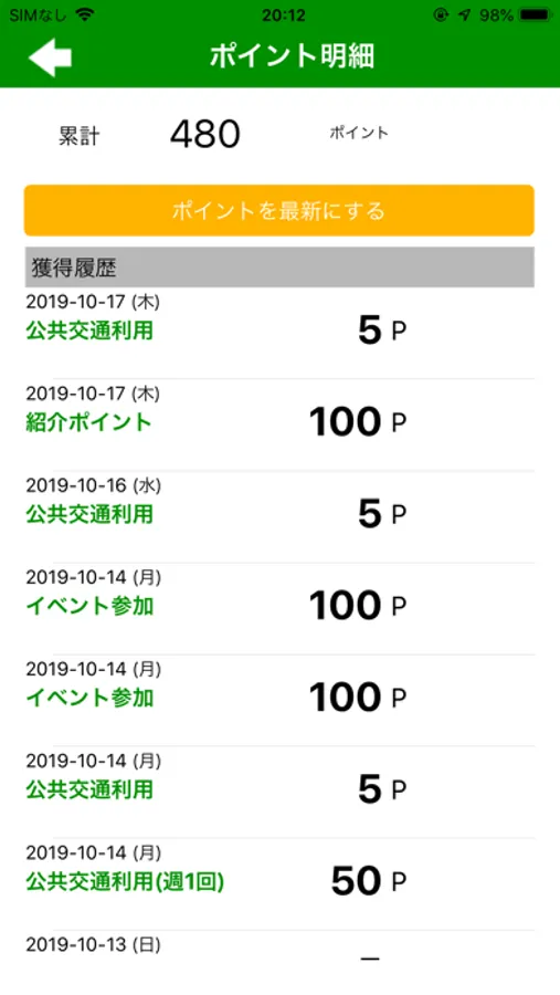 併せて、ポイント獲得履歴も表示することができます。