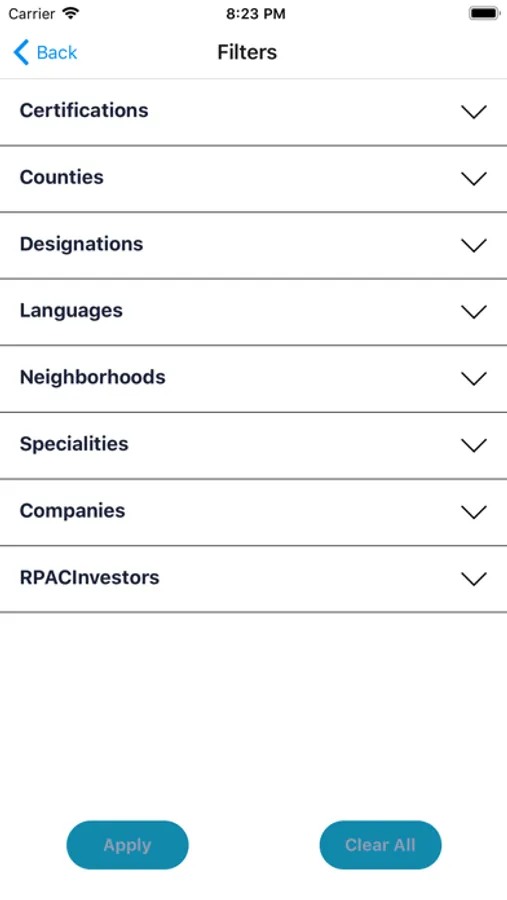 * Sorting and filtering of results by criteria such as language spoken, specialization, certifications & designations