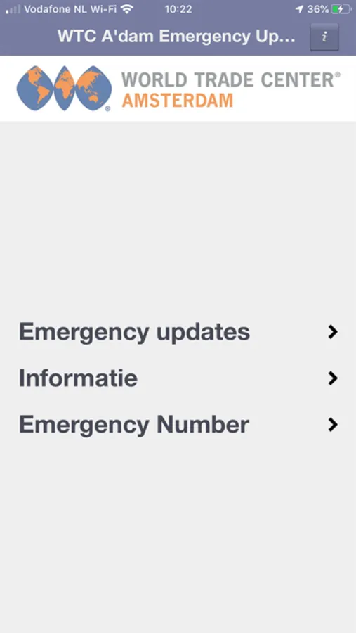 Emergency update app to inform you as a tenant of WTC Amsterdam during an emergency.