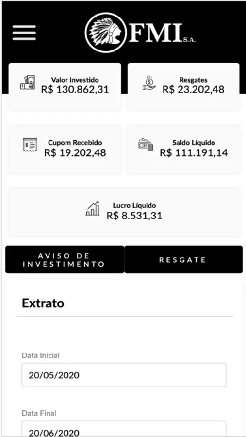 O Aplicativo da FMI S/A tem como finalidade fazer com que o usuário possa acessar sua conta e fazer todas as operações e acessos que necessita através de um aparelho celular. Dessa forma, todas as funcionalidades disponíveis em nosso site (www.fmisa.com.br) estão disponíveis para os usuários do aplicativo.