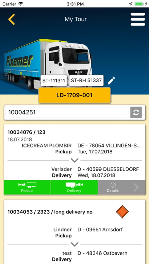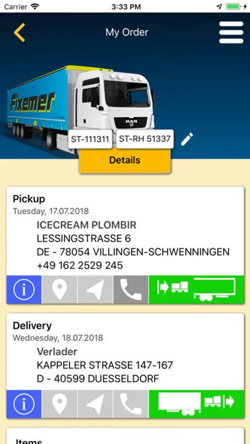 Current status messages of the most important route stations can be reported and transmitted in real time with a single click. Simple navigation to the loading and unloading point by calling up navigation apps with a click.